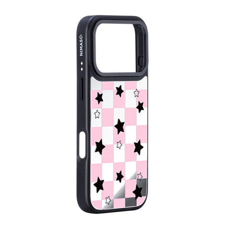 Nimaso Black & Pink Checkerboard Mirror MagSafe Phone Case for iPhone 17 / 17 Pro / 17 Pro Max / Air