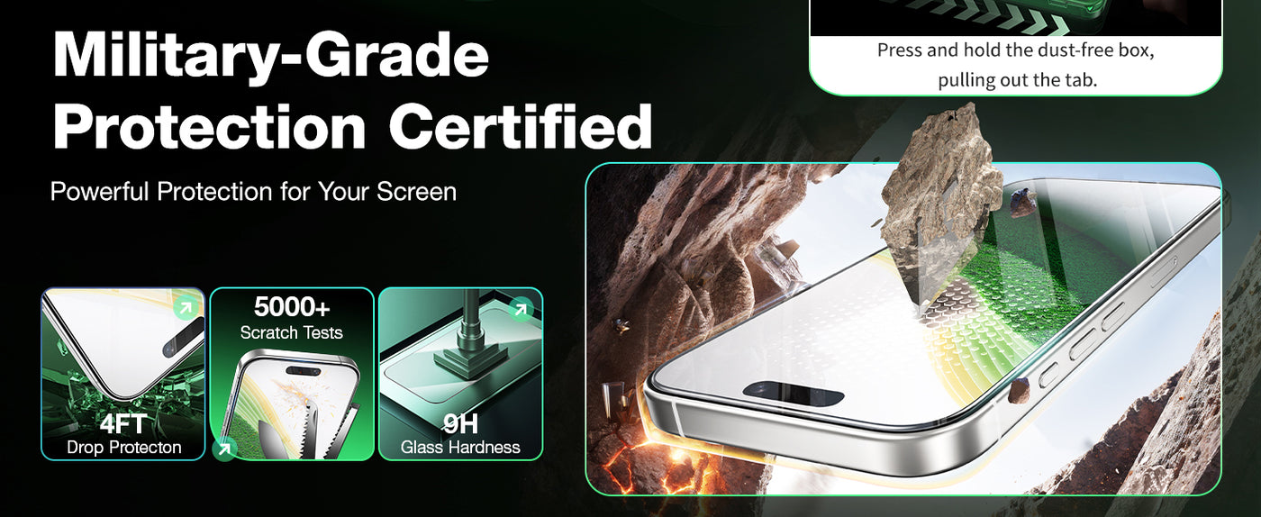 • Drop Protection: 9H military-grade hardness.